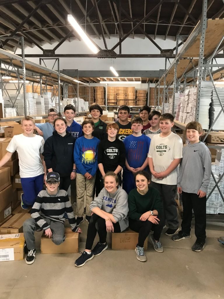 Student groups from Sayre and Lexington Catholic high schools sort books into bins and can pack an entire pallet of books in an hour. Middle school students from the Lexington School and Sayre exuberantly master the art of packing boxes – and it is a feat of engineering to fill a box with no empty spaces!