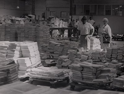 Tom Zemsky, who began working with Harriet Van Meter in her basement in 1976 and retired in 2009 after decades as a warehouse manager, described the system of sending books from Mentelle Park. “Books were sorted and selected according to their condition, subject, and appropriate English level. They were then wrapped in up to 10 lb bundles, using brown butcher paper, string, and glue; address labels run off a copier and applied; packed up to 30 to 35 lbs in a canvas mailbag, an outer destination tag tied on that, the bags bundled into a car and taken behind the main post office where they were individually weighed and postage applied.” When IBP began to send pallets and even sea containers, the organization borrowed warehouse space, for example, tobacco warehouses in the offseason. In 1980 a building that belonged to the Third Street YMCA was converted into a warehouse and used by IBP rent-free until October 1983. Then the board decided it was time for a permanent location, and the current building on Delaware Avenue was purchased. Over the years Improvements were made to the offices and warehouse, and an in-house bookstore was created in the 2000s.