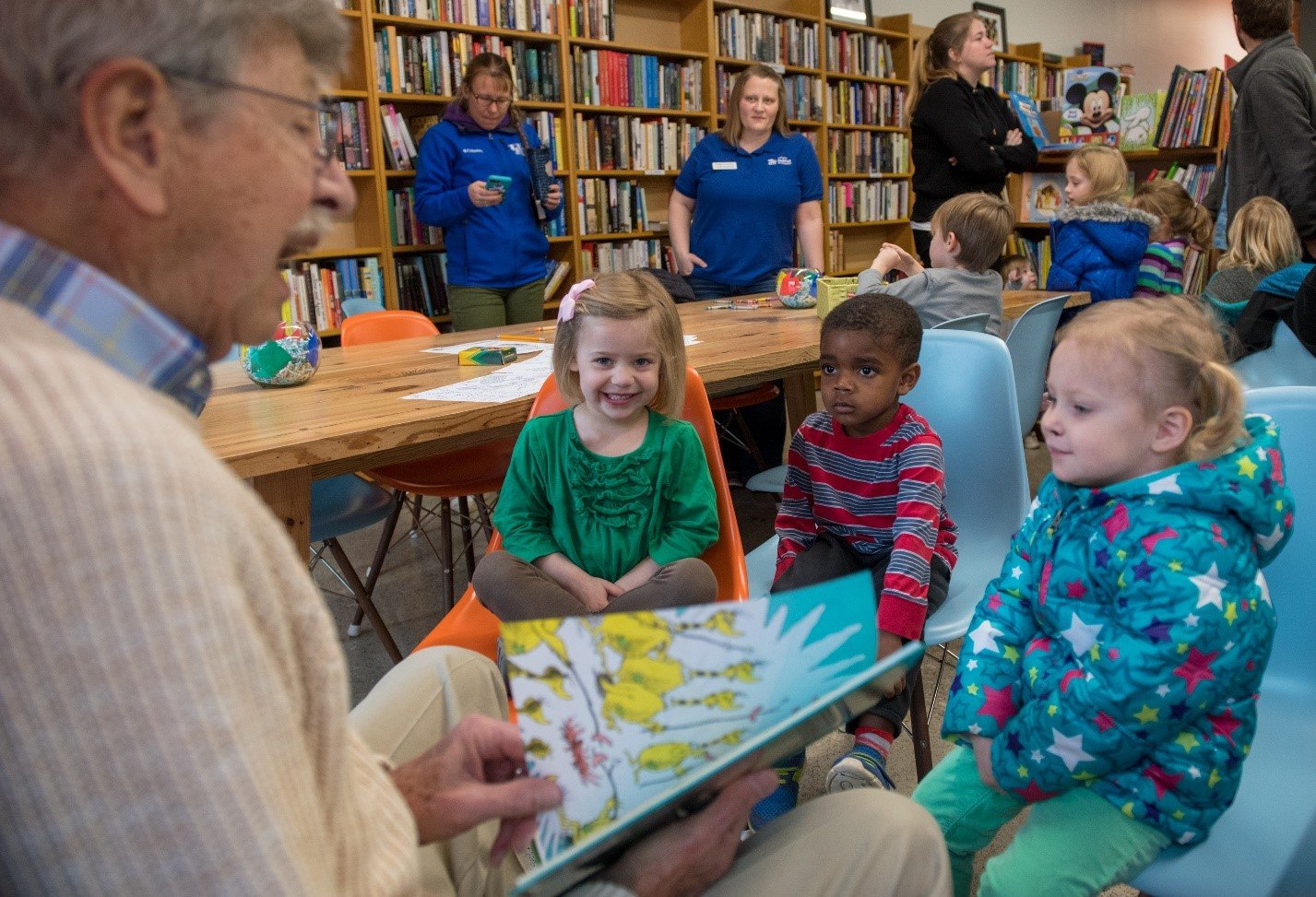 Despite the snowy weather, a steady crowd flowed through the doors as children participated in a coloring contest and listened to readings of Dr. Seuss books. Tables set up by KET and Be Kind Be Bold offered t-shirts and other memorabilia, including information about their own organizations. Visitors munched on green eggs and ham and dipped into ice cream while they strolled through the bookstore and were given tours of the new warehouse.