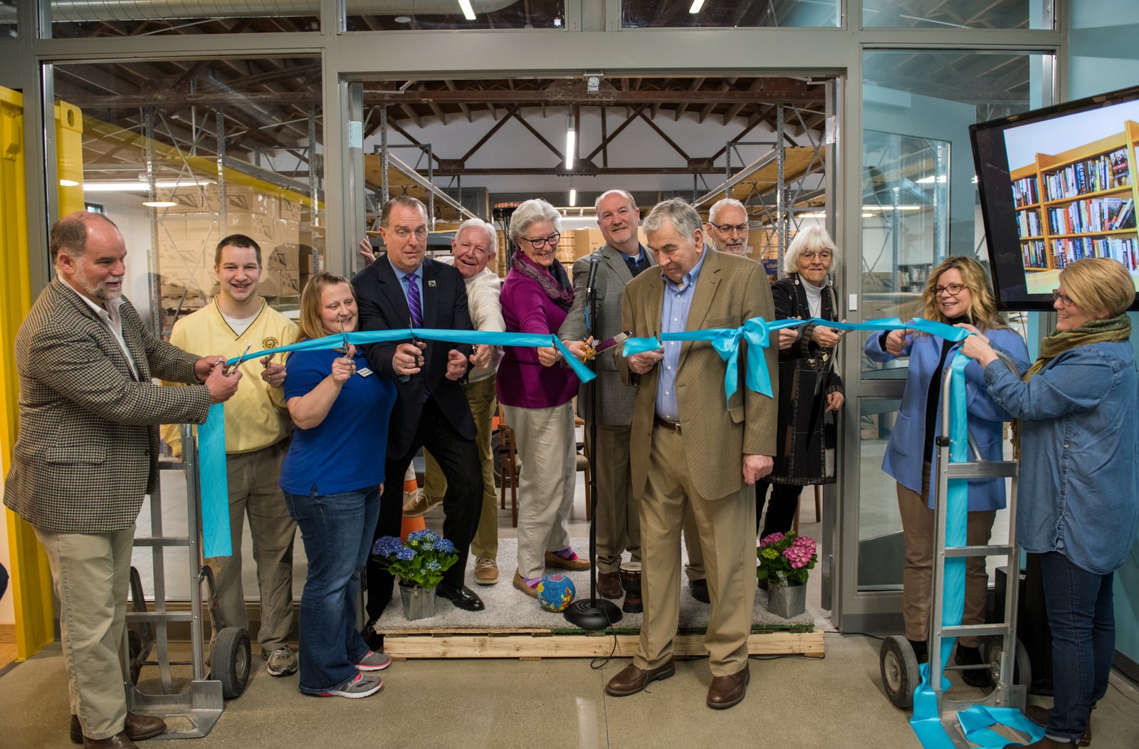 Lexington, Ky. – April 23, 2018 – “How many of you that are here remember the old warehouse?” asked International Book Project board member Dan Sprague during a speech to kick off the celebration of IBP’s grand re-opening. A crowd of Returned Peace Corps volunteers, Lexington families and International Book Project staff laughed in response. “So now you know why we’re smiling so broadly,” Sprague continued, gesturing to the new warehouse. “It used to be, you’d have to leave your jackets on in the winter or swelter in the heat and dodge furry animals. It was not a pretty sight.”